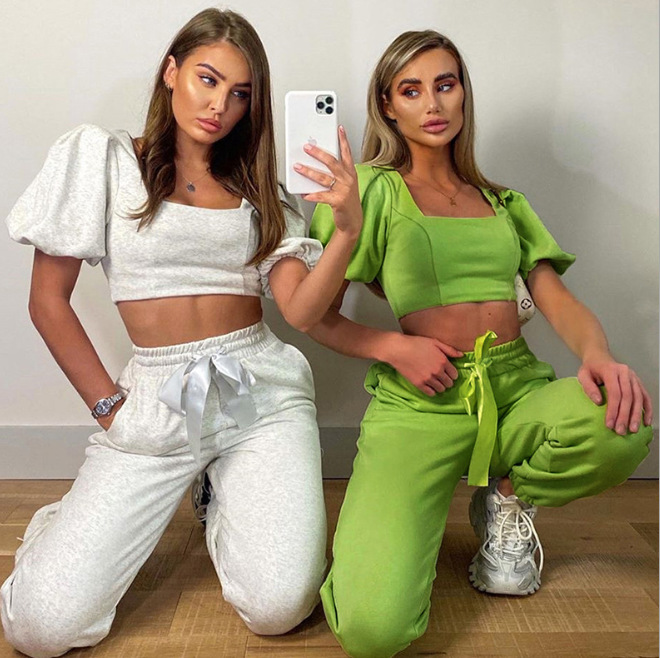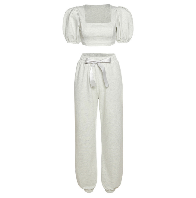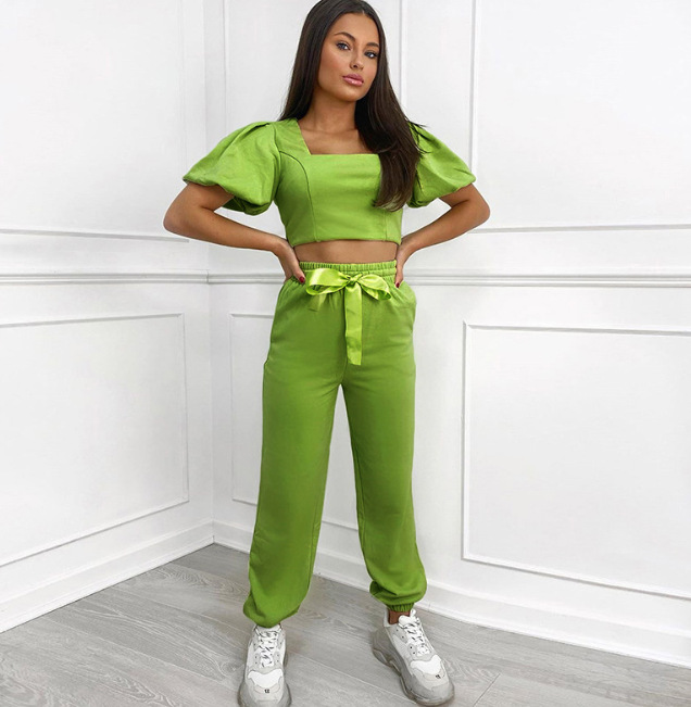 Lantern sleeve with square collar navel crop set