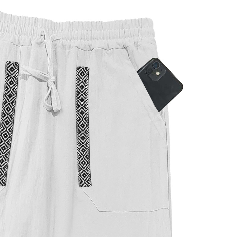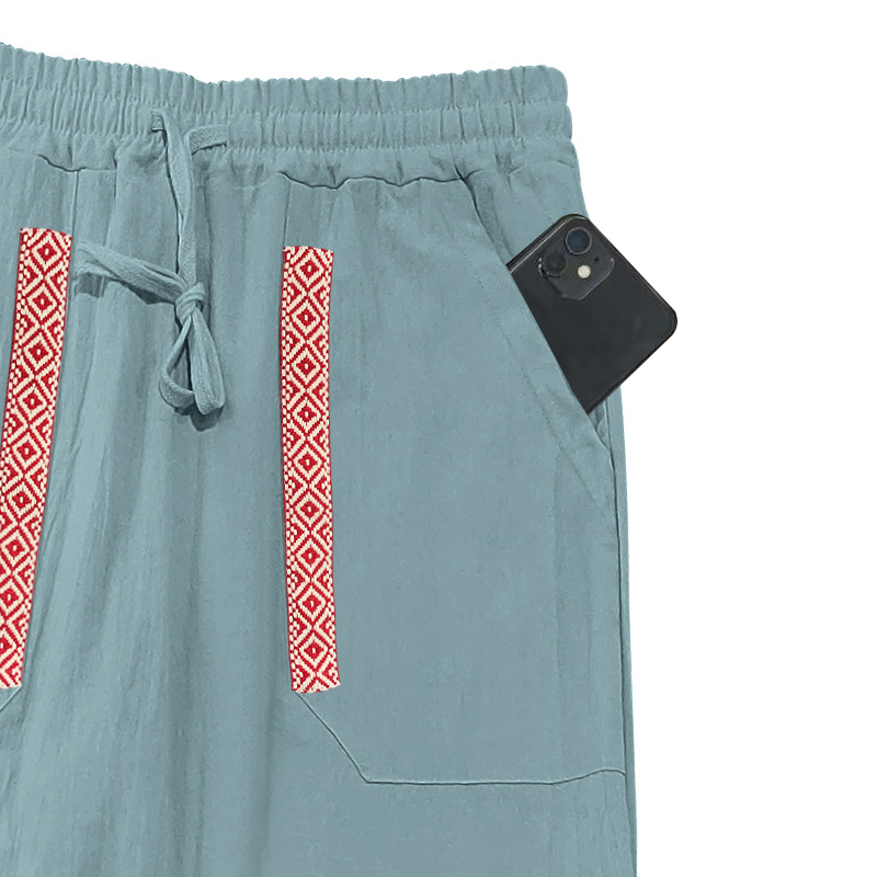Mens Breathable Loose-fit Wide-leg Casual Linen Pants
