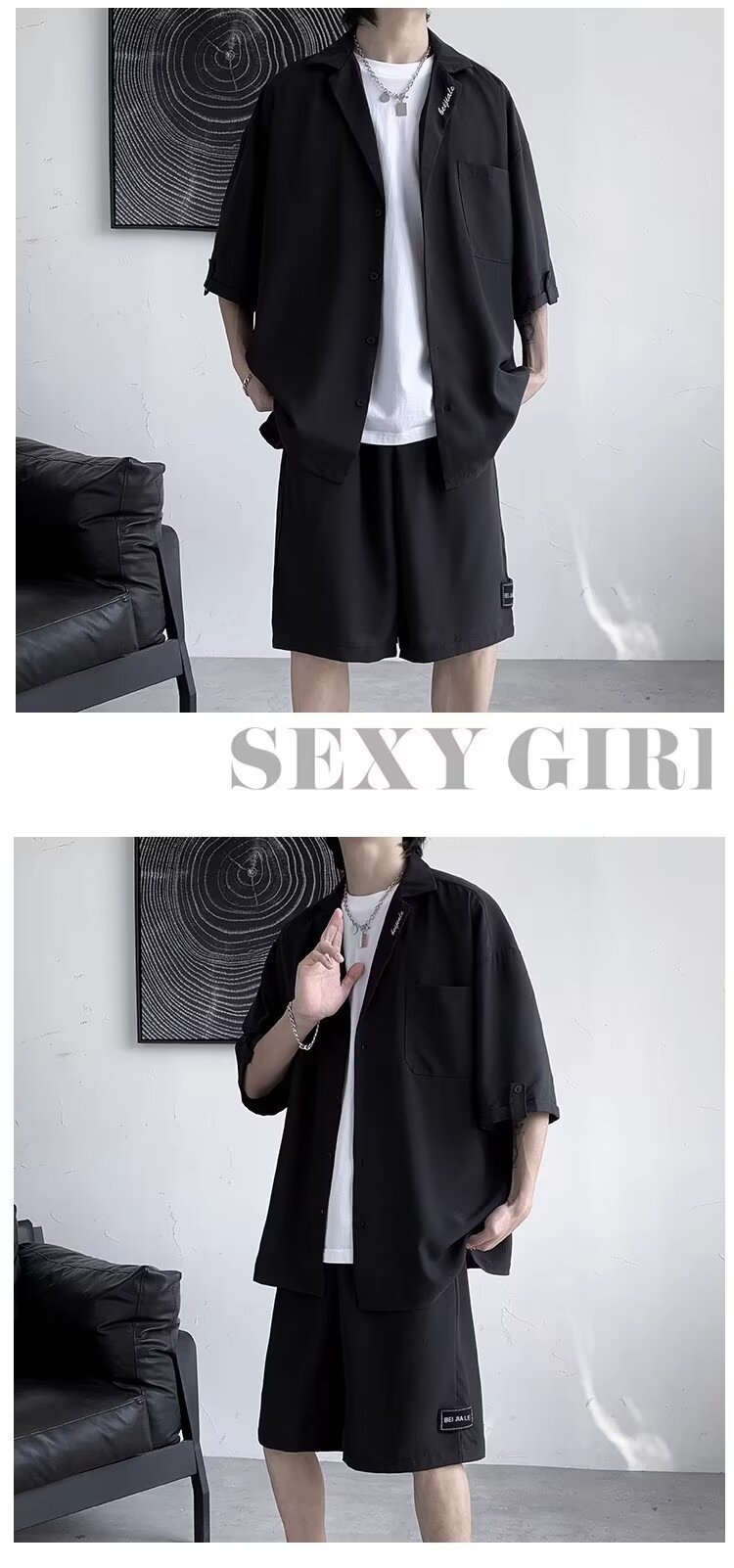 Mens Casual Shirt And Shorts TwoPiece Set