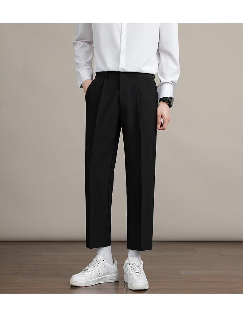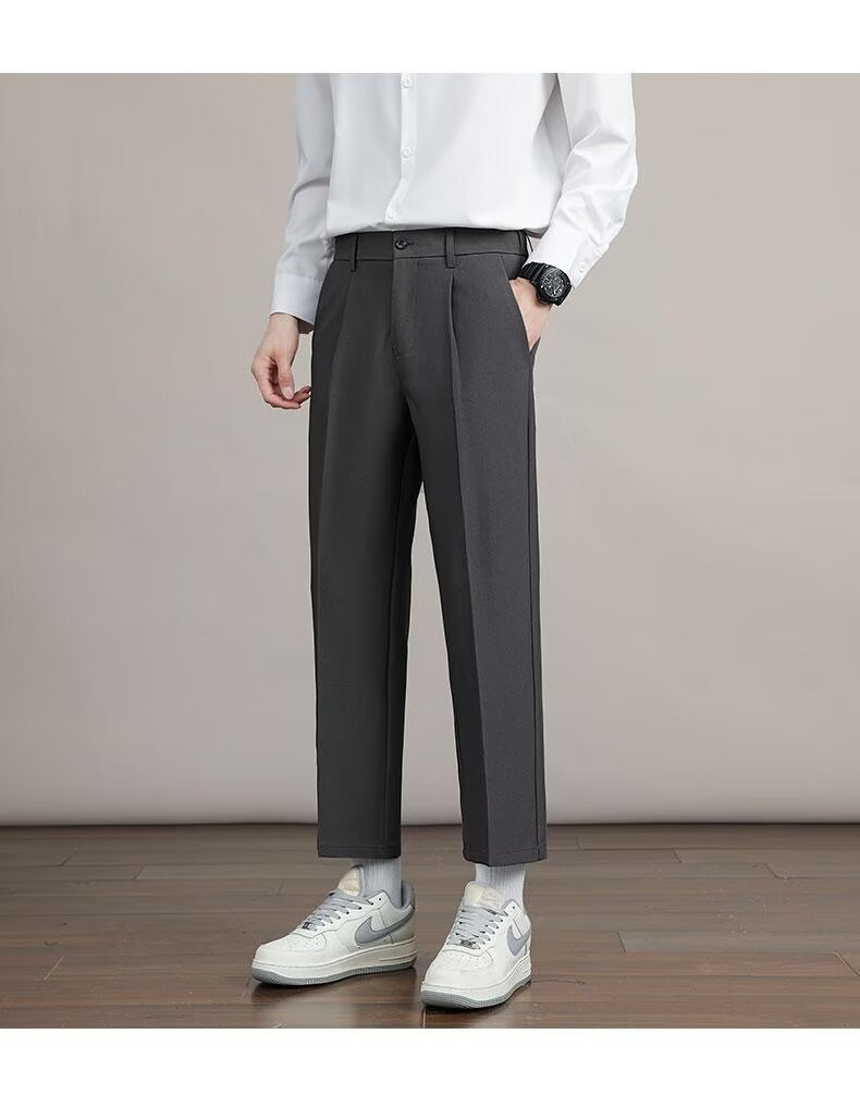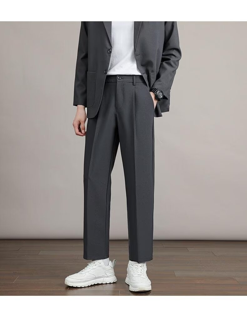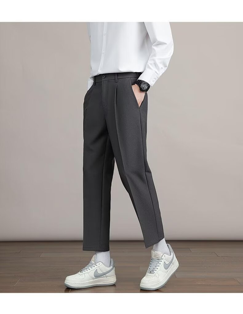 Mens Solid Color Minimalism Straight Cut Dress Pants