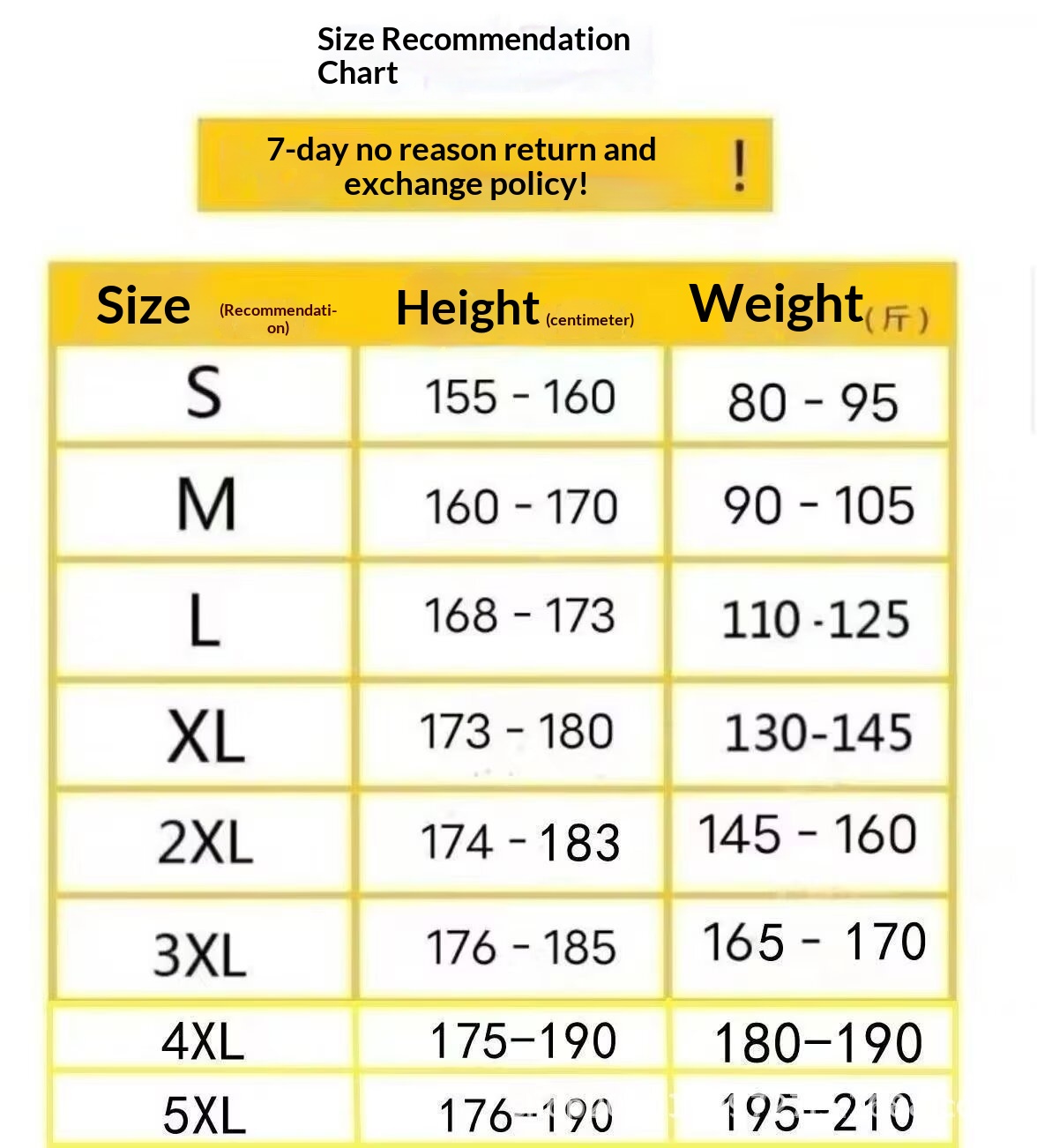 Sizes: S, M, L, XL, 2XL, 3XL, 4XL, 5XL